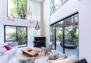 In this stunning villa in Vietnam, the 6.4-metre-high windows make a bold architectural statement and present a technical challenge. The solution? Silent Gliss cord operated curtain tracks.